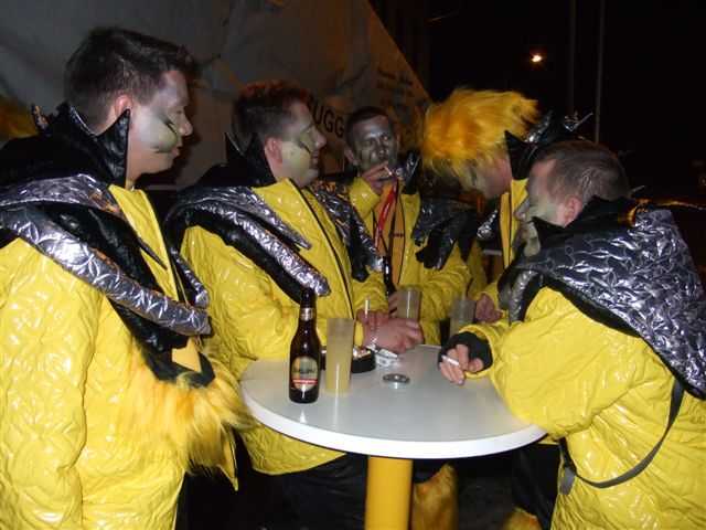 Knapp vor 17 Uhr trafen wir schliesslich in Waldstatt ein. Kaum war alles ausgeladen ging der Umzug von der Hirschenkreuzung zum MZG auch schon los. Die kurze Strecke war bald geschafft und das folgende Monsterkonzert wie erwartet laut. Nach einer kurzen Pause spielten wir um 18.30 Uhr erstmals in der Halle, verabschiedeten uns nach dem feinen Spaghetti-Essen aber in Richtung Fasnachts-Bar Bernhardzell, um pünktlich um 24.00 Uhr in Waldstatt wieder auf der Bühne stehen zu können. Vier Konzerte und ein Umzug… für den ersten Abend nicht schlecht!