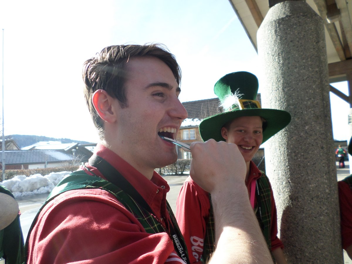 Das bunte Maskentreiben mussten wir dann aber zeitig verlassen. Die Zahnbürsteli und Instrumente waren gepackt und nur noch eine längere Carfahrt trennten uns von der ‚Solothurner Schtrosse Fasnacht für Aui‘ (div. Auftritt irgendwo in den Gassen ab 20:15).