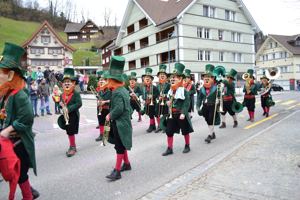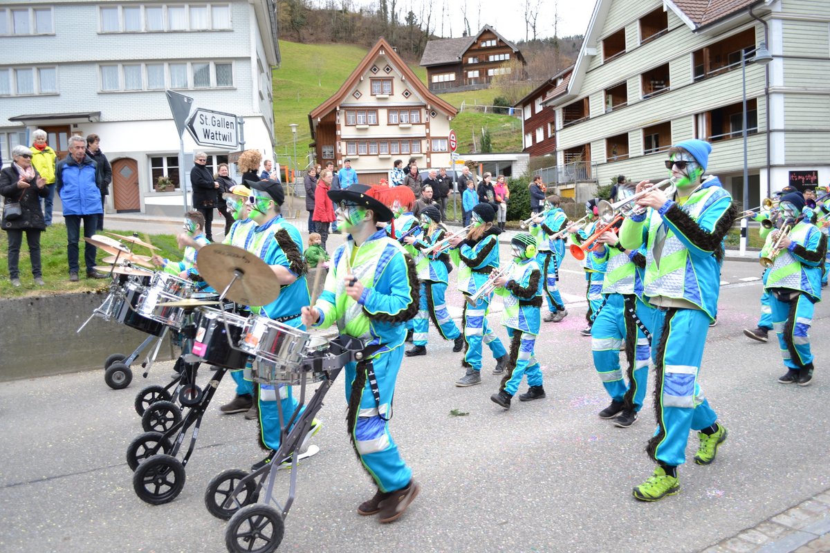Am letzten Wochenende auf unserer Fasnachtstour ging es auf grosse Fahrt. Am Samstag starten wir traditionell am Umzug Hemberg (Start 13:30). Bei strahlendem Sonnenschein zogen wir mit einer bunten Schar von der kath. Kirche in Richtung Turnhalle. Natürlich spielten anschliessend auch noch in der Halle.
