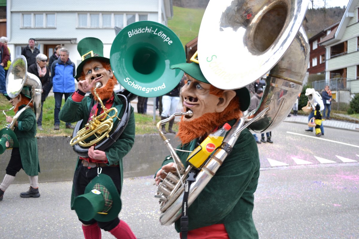 Am letzten Wochenende auf unserer Fasnachtstour ging es auf grosse Fahrt. Am Samstag starten wir traditionell am Umzug Hemberg (Start 13:30). Bei strahlendem Sonnenschein zogen wir mit einer bunten Schar von der kath. Kirche in Richtung Turnhalle. Natürlich spielten anschliessend auch noch in der Halle.