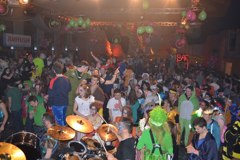 Nach dem Umzug ging es ab 20 Uhr kunterbunt in der MZA mit dem Gugger-Maskenball weiter. Erneut durften wir ein rauschendes und friedliches Fasnachtsfest mit zahlreichen Masken, Kostümen und Guggenmusik feiern.