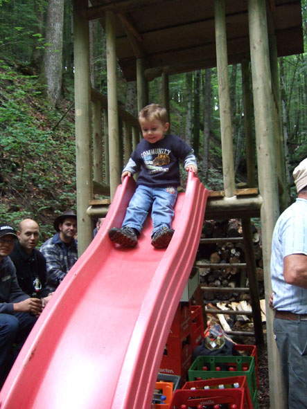 Den Anfang machten die Initianten gleich selber und verpassten dem Picknickplatz beim Wasserfall im Mühletobel ein neues Gesicht. In Zusammenarbeit mit dem Grundstückbesitzer wurden einige Bäume entfernt, das Terrain sanft angepasst, ein kleiner Stausee angelegt und der Wasserfall begradigt. Mit einer neuen Tisch- und Bankgarnitur, einer grosszügigen Feuerstelle und einem Kletterhaus mit Rutschbahn wurde der Platz zum perfekten Ausflugsziel für Familien. Den gesamten finanziellen Aufwand bezahlten die Bläächi-Lömpe aus ihrer Vereinskasse.
