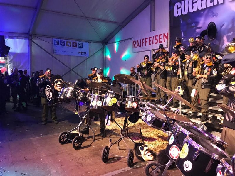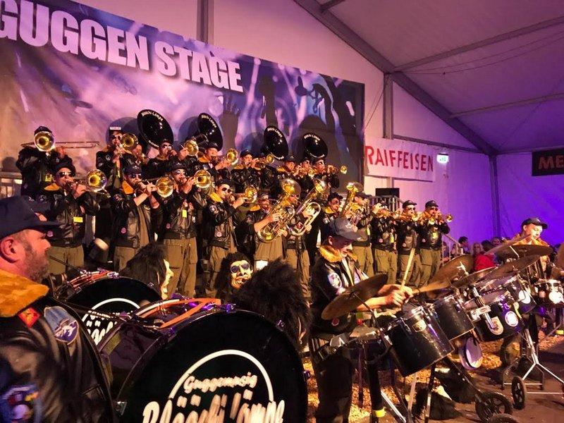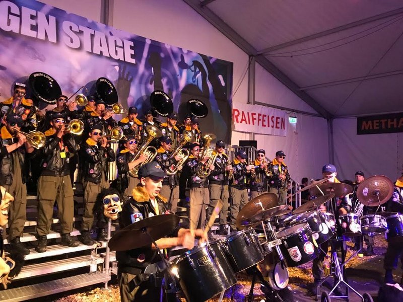 Um 18:18 startete dann der Nachtumzug aller Guggen durch Gossau bevor wir um 20 Uhr ein drittes Mal unserer Instrumente im Zelt vor dem BBC lautstark ertönen liessen.