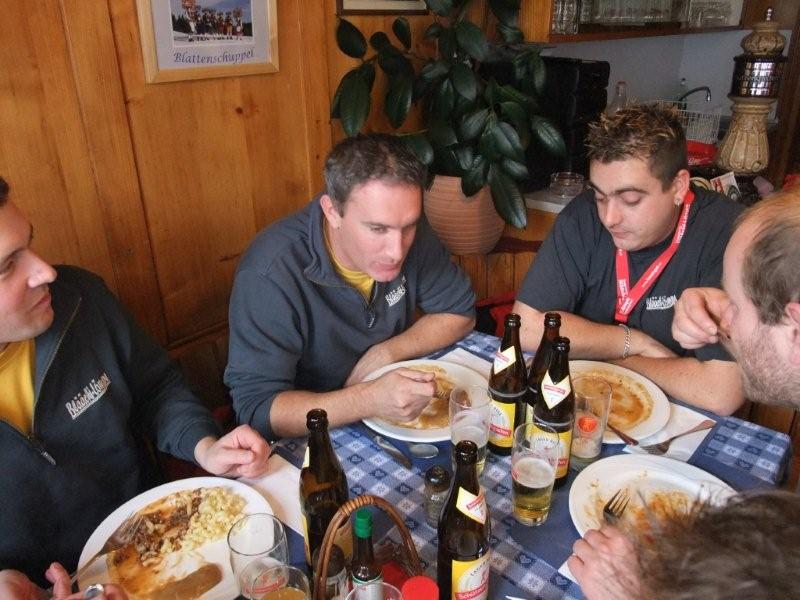 Nach der musikalischen Eröffnung und der präsidialen Rede konnten wir mit den zahlreichen Besuchern auf die Narrenzeit 2010 anstossen. Anschliessend ging es für die Gugger auf direktem Weg zu Ida ins Schäfle. Wie schon seit vielen Jahren konnten wir uns dort mit Mehlsuppe sowie Ghackets und Hörnli mit Öpfelmues stärken. Natürlich durfte auch der ‚Guggerkafi‘ zum Dessert nicht fehlen. …und serviert wurde alles mit viel Charm durch die reaktivierte Servierdüse ‚Klaudia‘! Es war genau wie vor vielen Jahren – einfach toll! Danke Ida!