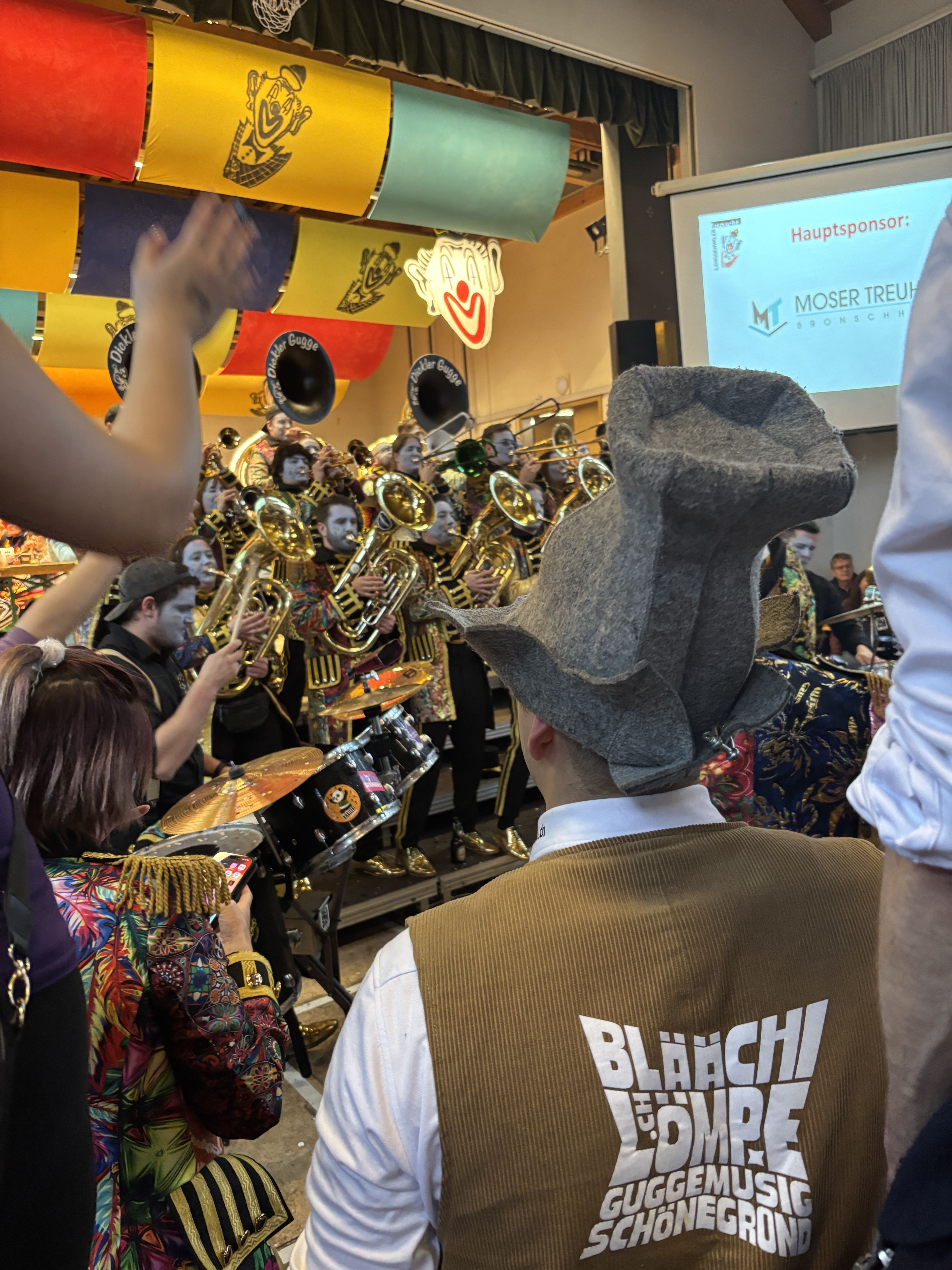 Dann wars auch schon da, das letzte Wochenende unserer Tour vor der eigenen Fasnacht. Es begann am Freitagabend mit der Beizenfasnacht Moslig. Wir zogen von Beiz zu Beiz und spielten überall unsere Stücke.