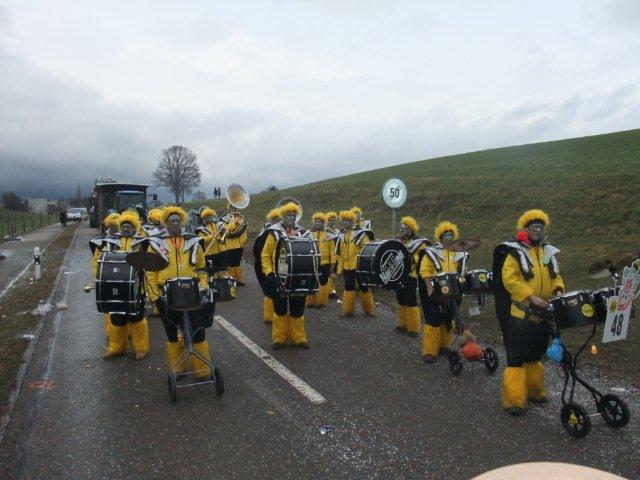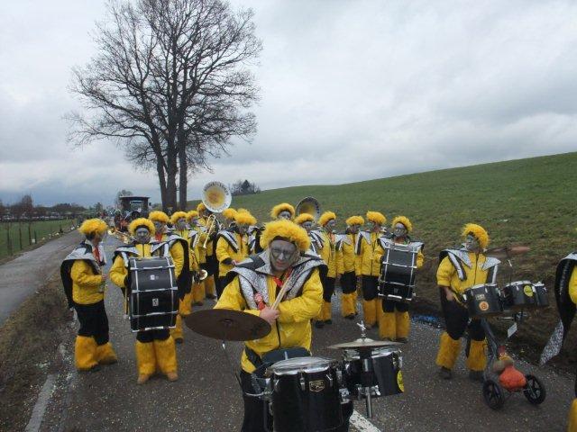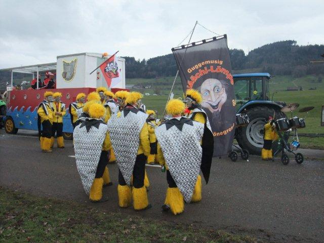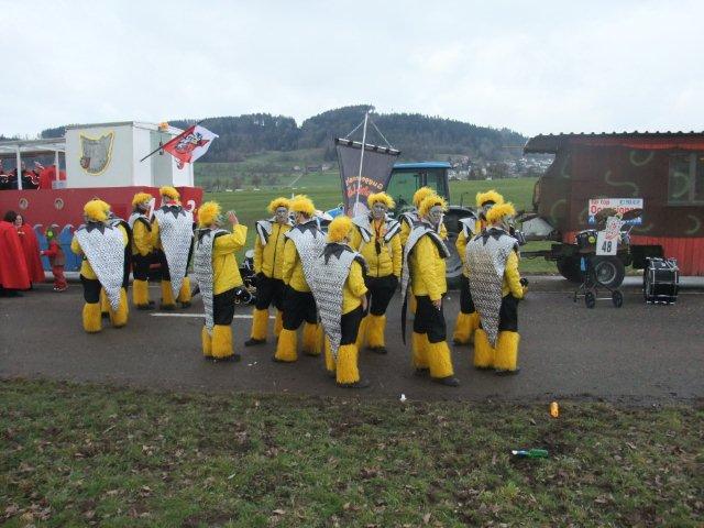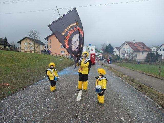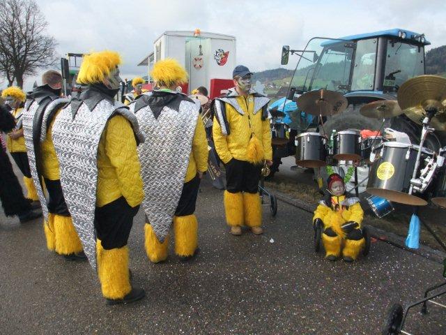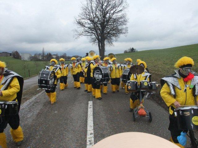 Am Sonntag, 27. Februar, nahmen wir am Umzug in Lenggenwil teil. Trotz nicht gerade ermutigender Wetteraussichten gingen wir als Nummer 48 (von 70) voll motiviert an den Start. Mit viel Glück erreichten wir praktisch trocken das Ziel und verzichteten auf das übliche Konzert vor der Kirche, um nicht doch noch ganz nass zu werden.