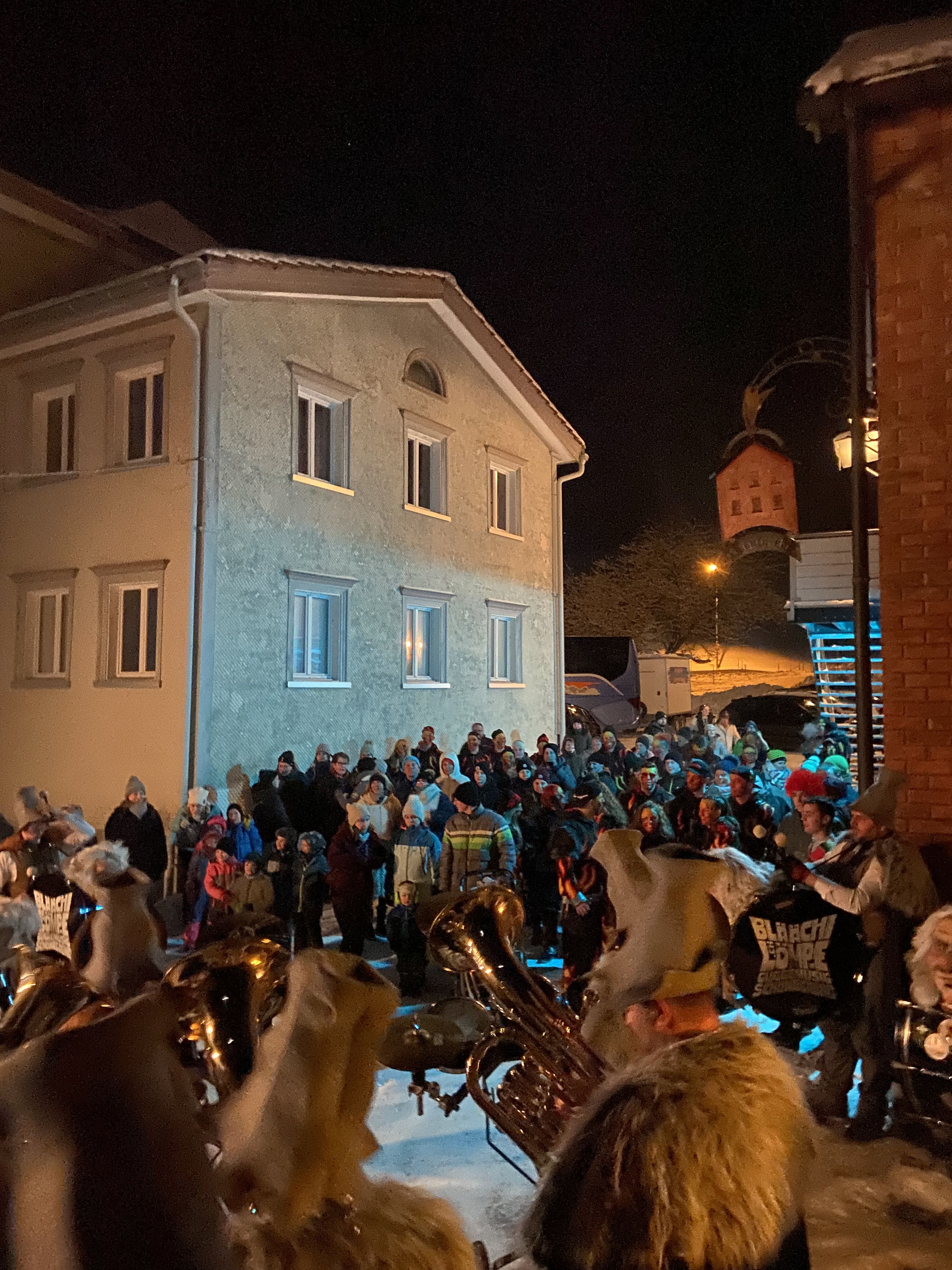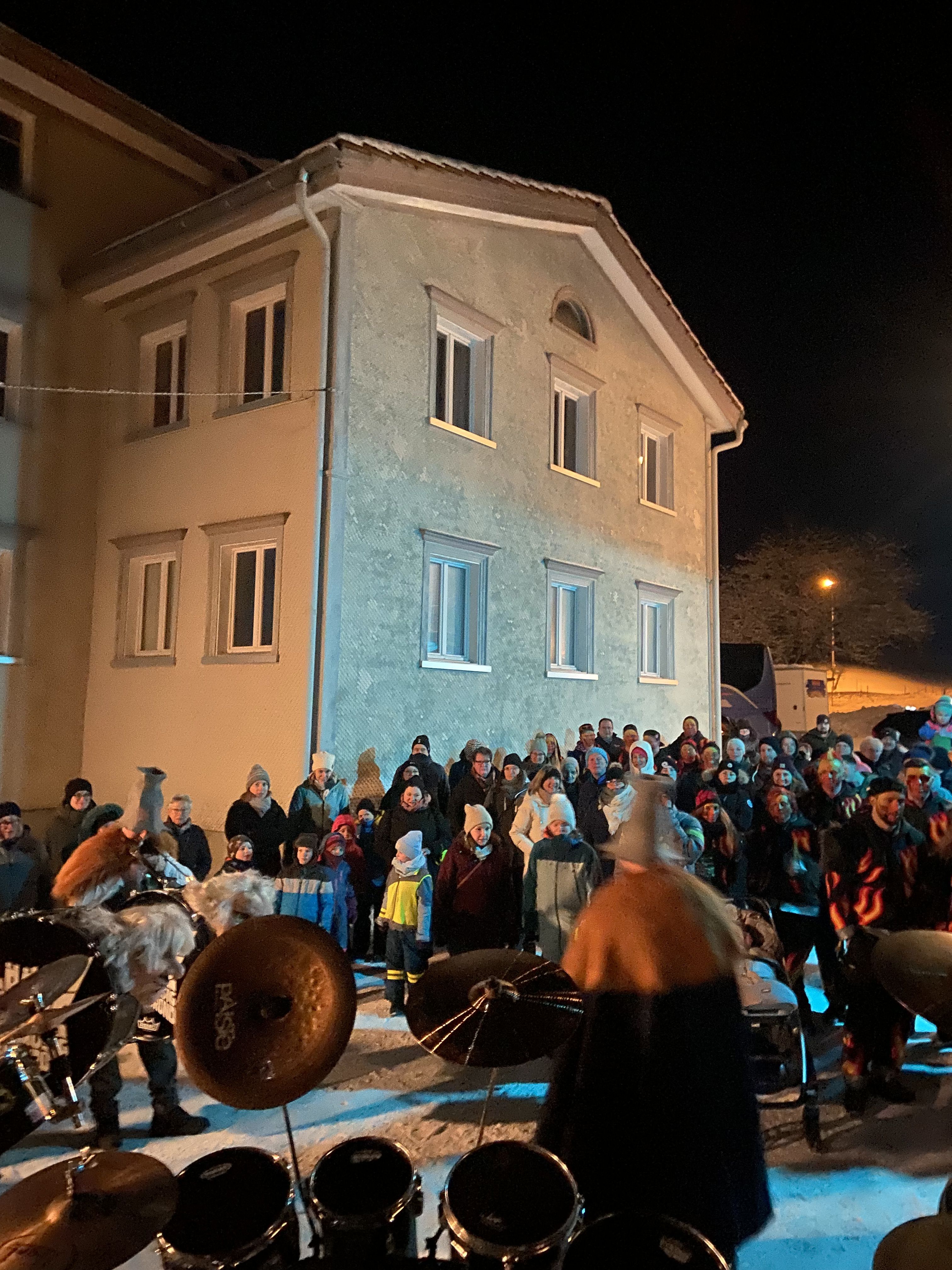 Zahlreiche Fasnächtler/innen versammelten sich trotz beissender Kälte auf dem Platz um sich unsere neuen Gwändli und unser neues musikalisches Repertoire anzusehen und anzuhören. Vielen Dank für’s kommen! Wir freuen uns jeweils immer über die zahlreichen Besucher/innen.