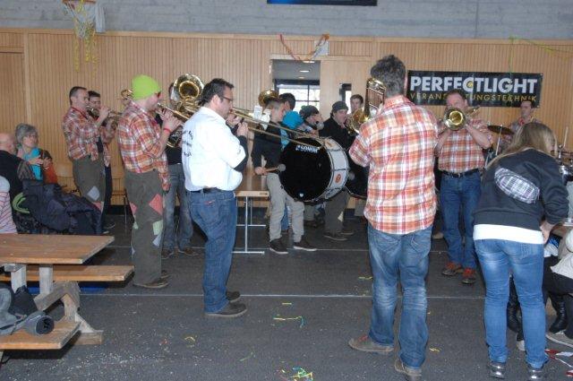 Der Narre-Brunch am Sonntagmorgen (17.02.) ab 10.00 Uhr war wieder sehr gut besucht. Picknich, Hammschnörri-Wettbewerb und Guggenmusik bildeten das Rahmenprogramm. Mit der Rückgabe der Gemeindeschätze an die Ortsregierung und dem gemeinsamen Konzert von Hämmliloch-Gugge und Bläächi-Lömpe fand die Schöngröndler Fasnacht 2013 einen würdigen Abschluss.