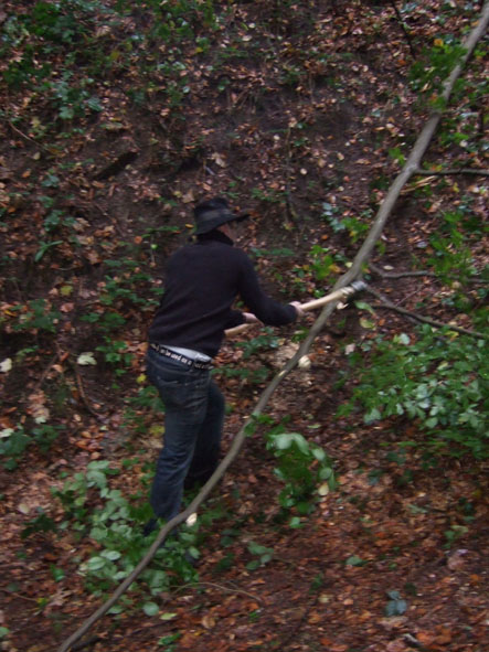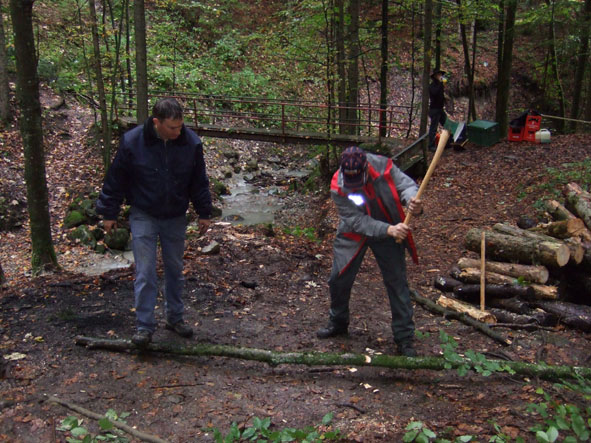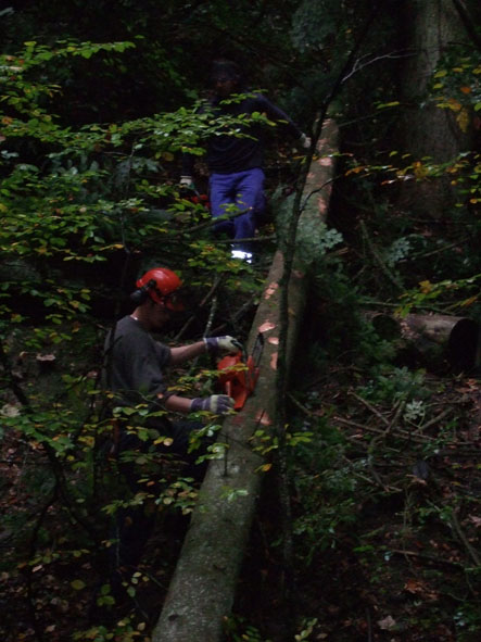 • 08.55 Uhr – Zwerg und Beetle greifen zu den Motorsägen! Achtung – Beetel sehr eifrig!