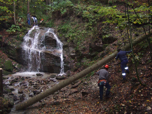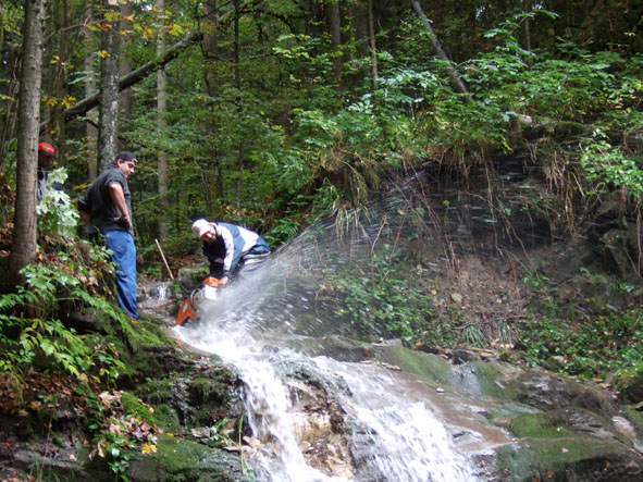 • 09.10 Uhr – Muck und Smörebröd nehmen die Wasserfall-Korrektur in Angriff.