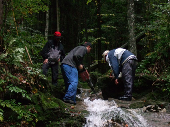 • 08.00 Uhr – Eintreffen der Arbeitsequipe und Verlad von Baumaterial und Werkzeug